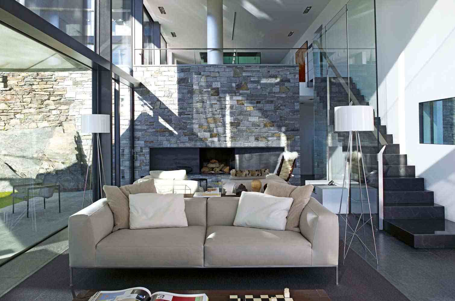 Кирпичная стена в гостиной — отличный фон для зоны отдыха