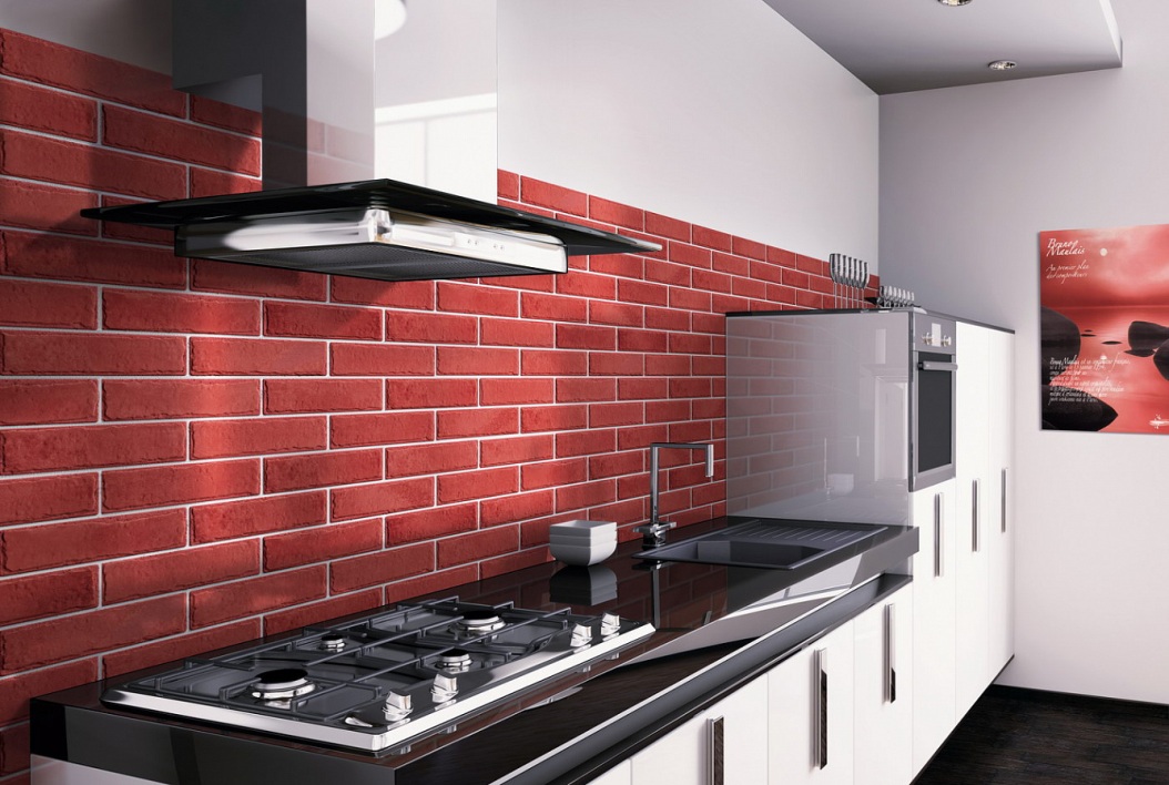 Данная продукция для укладки на стены и другие поверхности в помещении и снаружи внешне имеет сходство с кирпичиками. Благодаря подобной особенности рабочую область на кухне можно выделить в общем дизайне помещения. Кроме того, некоторые решения предлагают использовать плитку также для декора оконных или дверных проемов для лаконичного завершения дизайнерской задумки.