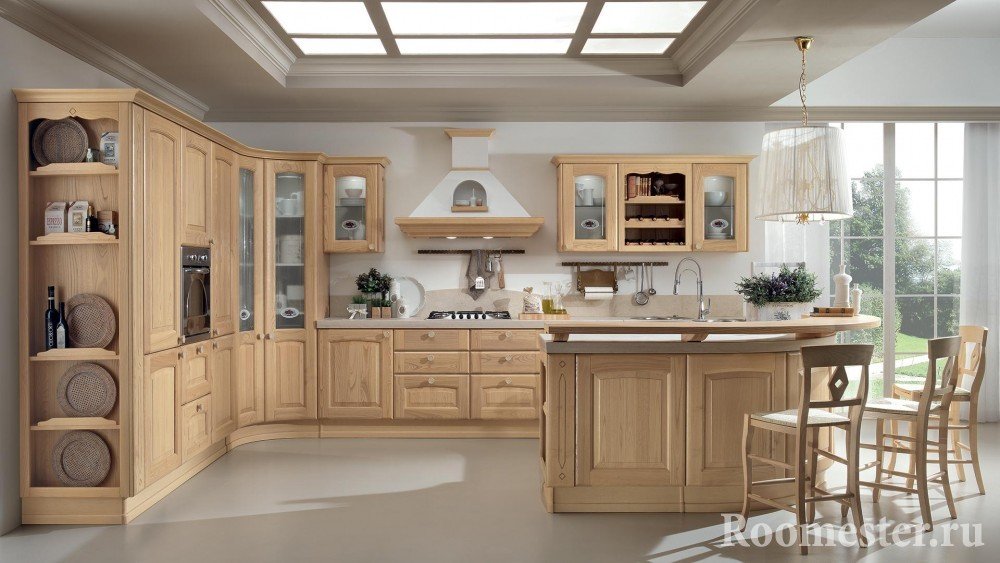 Кухонный гарнитур из дерева всегда смотрится богато, но и стоит соответственно. Модульные кухни из натурального дерева не производят.