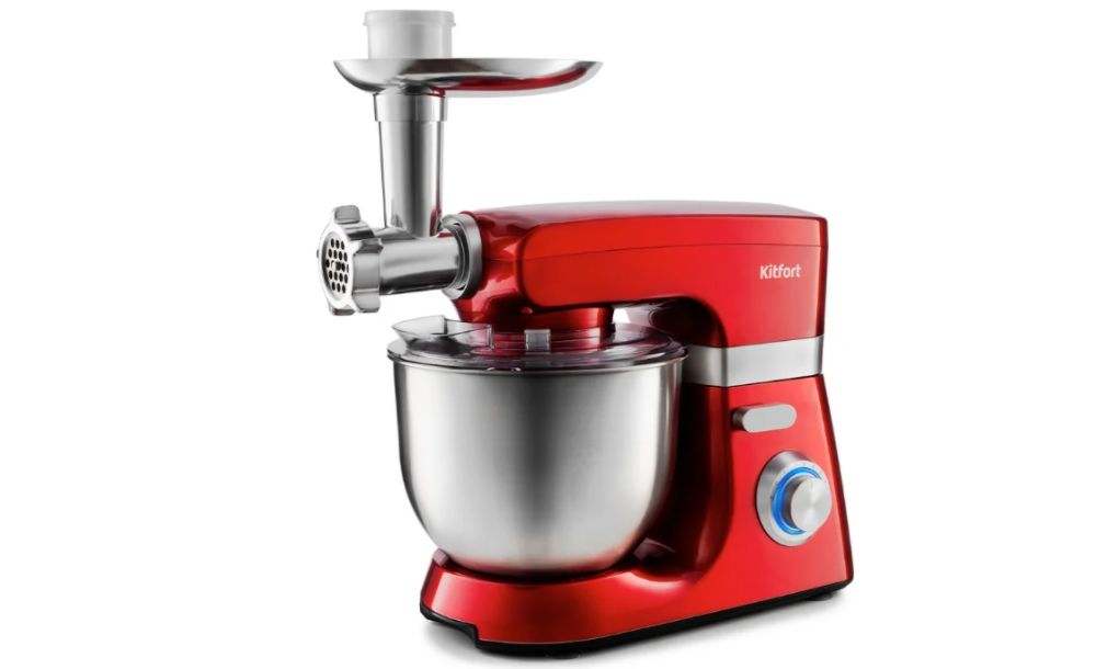 Многофункциональный и мощный планетарный миксер «2 в 1» КТ-1398 поможет вам смешать ингредиенты, взбить яичный белок или сливки, приготовить картофельное пюре, соус, крем, мусс, замесить жидкое тесто для блинов, перемолоть мясо на фарш, приготовить колбасу или кеббе. В комплекте миксера имеется мясорубка, что превращает эту модель в универсальную кухонную машину. Миксер оснащен планетарной системой смешивания: во время работы насадка вращается вокруг своей оси и одновременно движется по окружности по внутреннему объему чаши, обеспечивая идеальное качество смешивания и ровную консистенцию без комков. Надежный двигатель высокой мощности позволяет быстро и эффективно смешивать ингредиенты разной консистенции для самых разнообразных кулинарных целей. Встроенный вентилятор принудительно охлаждает двигатель потоком воздуха, так что он не перегреется при работе на высоких скоростях или при замешивании крутого теста. Нескользящие ножки с присосками прочно фиксируют миксер на столе. Миксер может работать в полностью автоматическом режиме. Вам достаточно только положить ингредиенты, надеть насадку и включить прибор. Дальше он будет работать сам. Не нужно ничего держать в руках, как в случае ручного миксера или блендера, и, пока миксер работает, вы можете заниматься другими делами. Миксер позволяет плавно регулировать скорость от минимума до максимума. При включении миксера скорость вращения увеличивается постепенно, чтобы предотвратить разбрызгивание ингредиентов. Прибор оснащен системой безопасности. Он автоматически выключится, если откинуть моторный отсек. Если при этом регулятор скорости стоит не на нуле, то при возвращении моторного отсека в исходное положение мотор не включится.