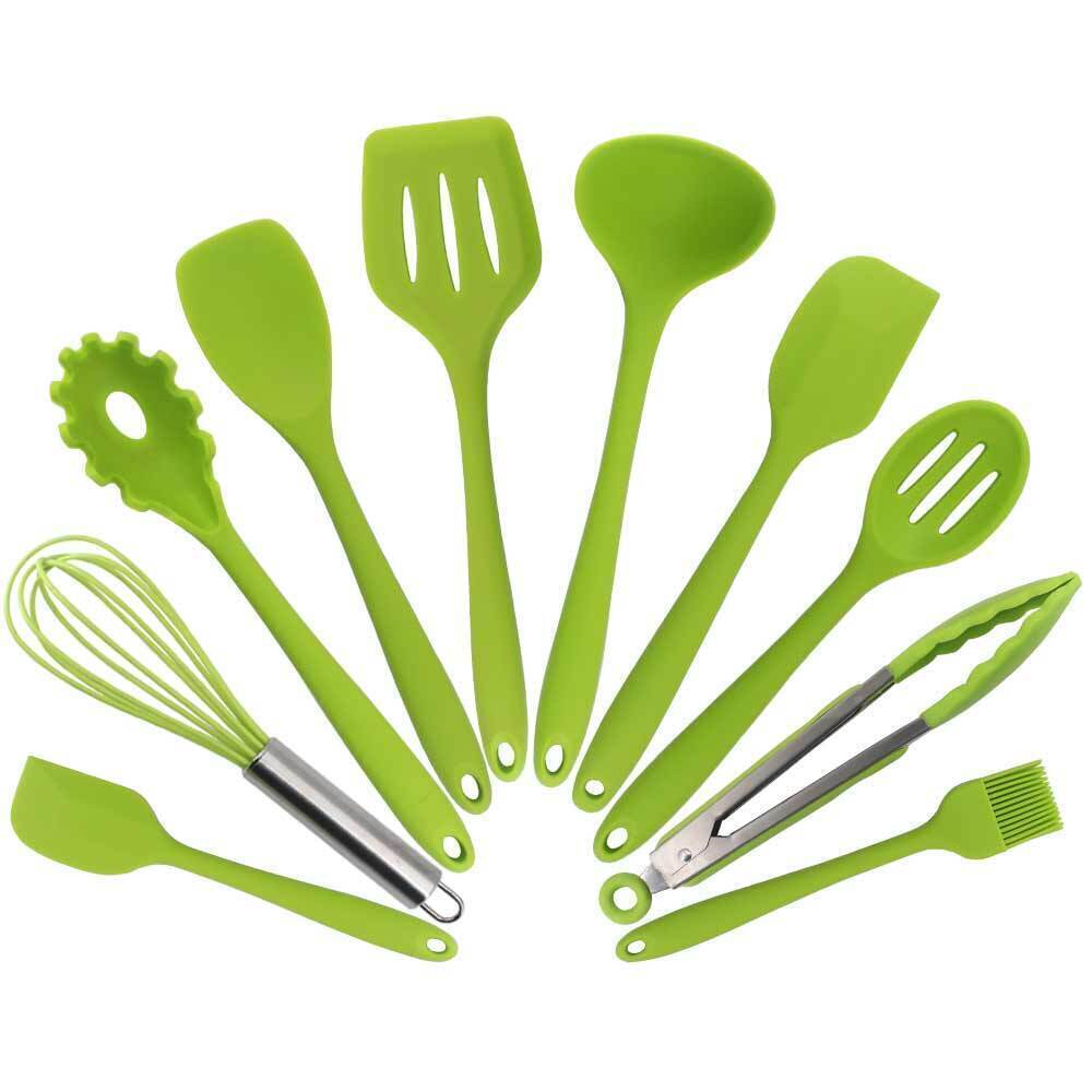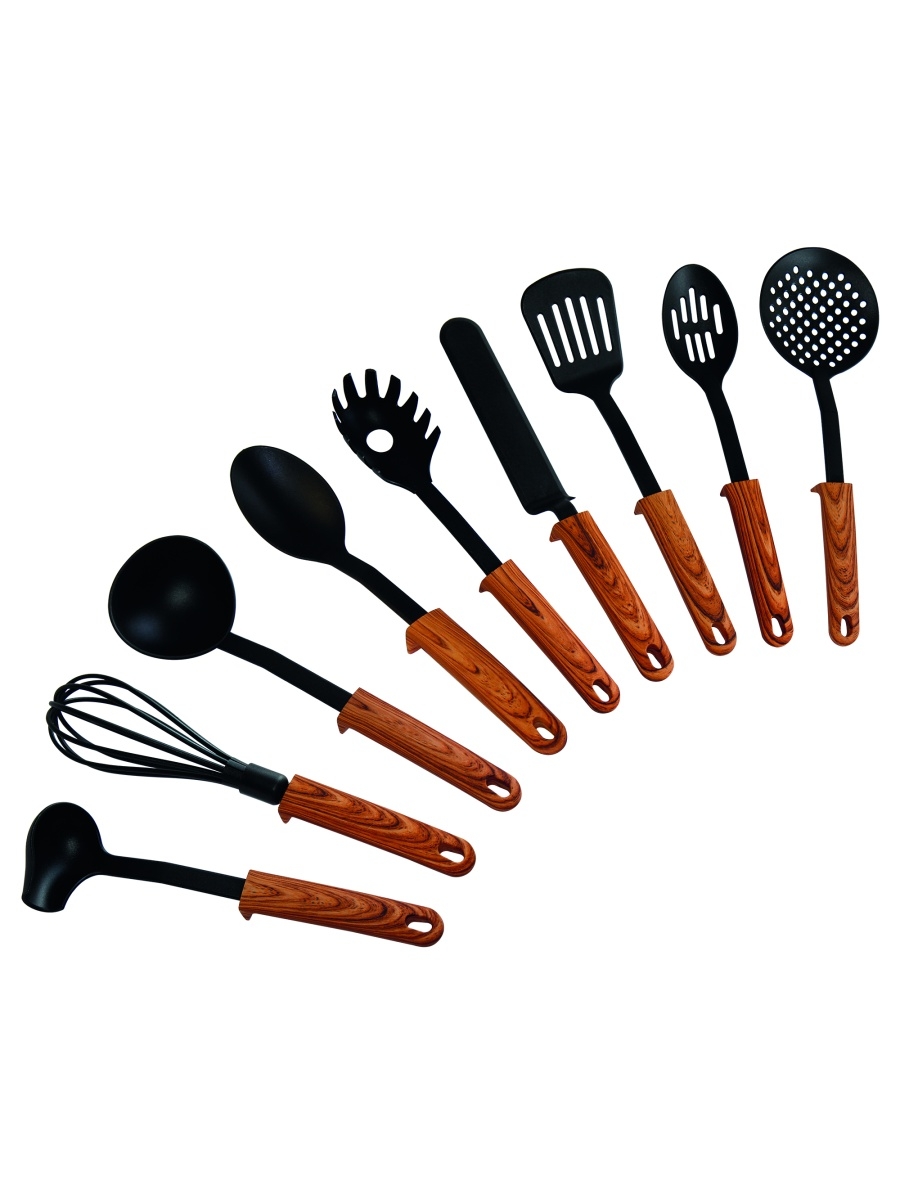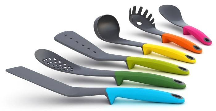 Кухонные принадлежности из нейлона – термостойкого пластика с более высокой гибкостью, чем у обычного, выпускают в разных комплектациях, размерах и цветовых решениях. Нейлон устойчив к высоким температурам – не боится кипятка и горячего дна сковороды. Правда, прибор нельзя оставлять на бортике сковородки или вблизи конфорки, может расплавиться.