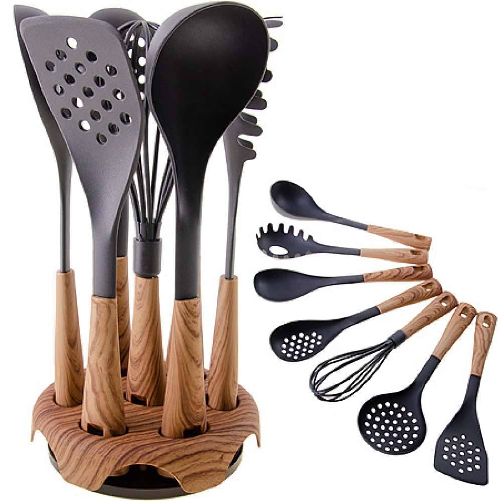 Набор кухонных принадлежностей на подставке можно поставить на стол рядом с плитой, чтобы всегда был под рукой
