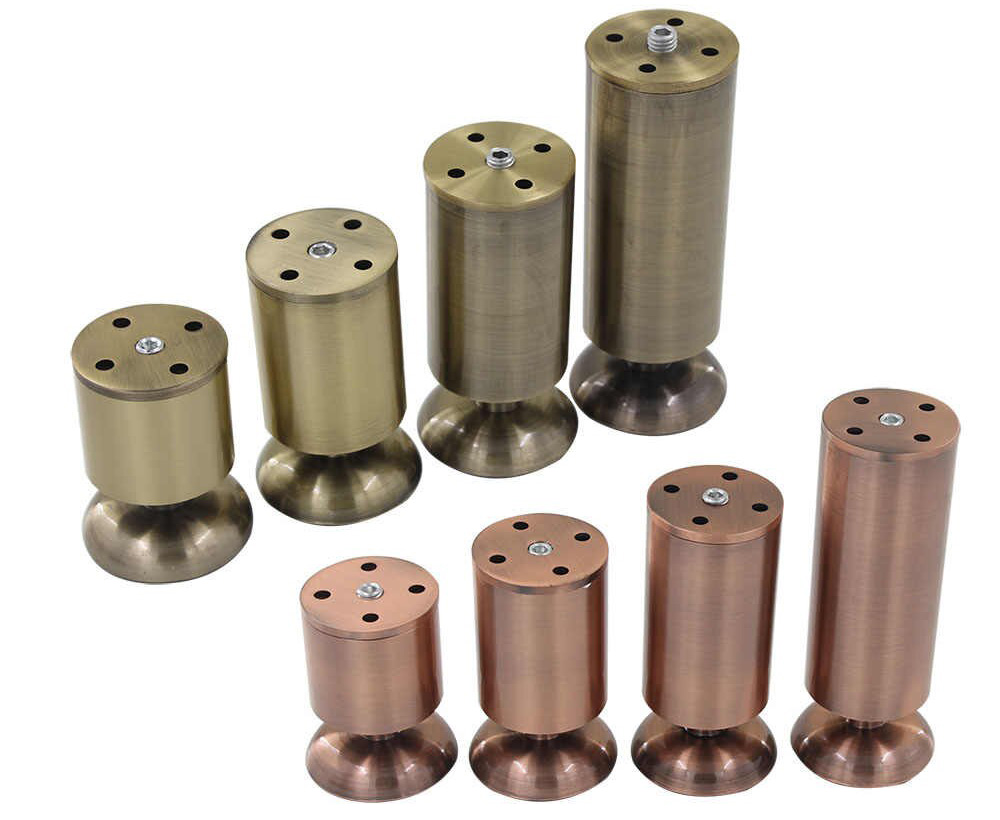 Мебельные опоры, выполненные из стали, обладают возможностью регулировки. Оснащены выкручивающимся подпятником, диаметром 37 мм. Высота модели составляет 130 мм. Конструкция предназначена для фиксации к основанию кровати. Модель обладает блестящим золотистым покрытием. Средняя стоимость составляет – 1 159 руб.