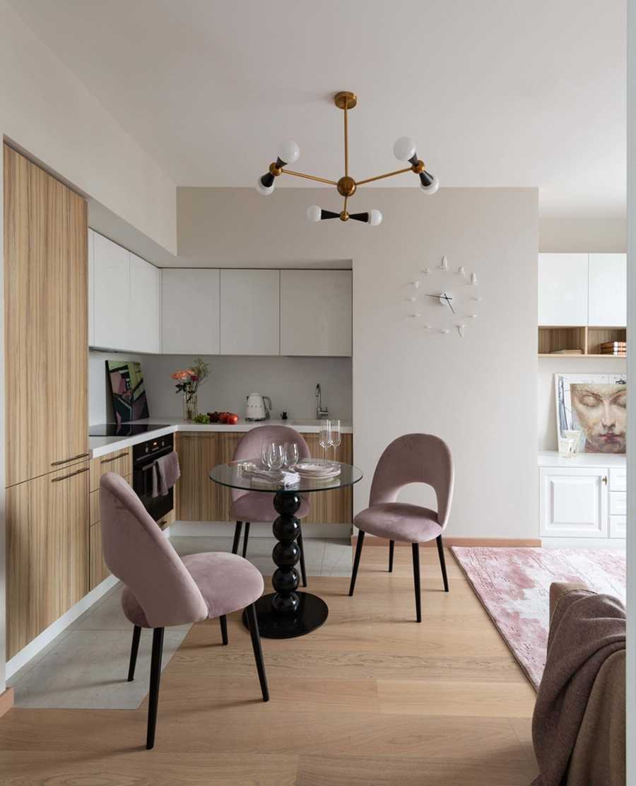 обеденная зона служит продолжением столешницы гарнитура или острова, и важно идеально скоординировать их по высоте