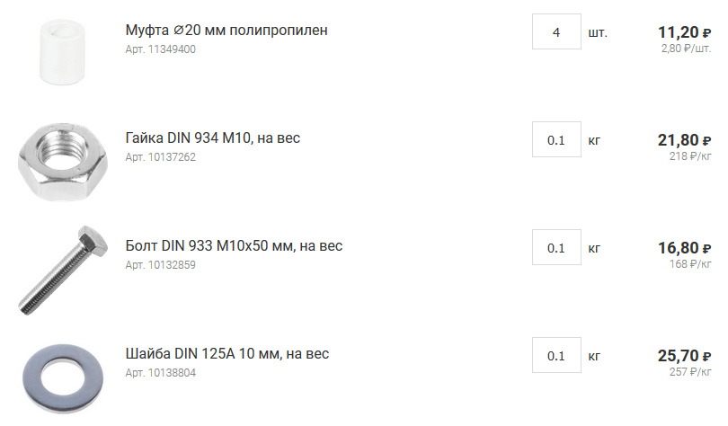 Это конечно мелочь, но развесные метизы в Leroy Merlin намного дешевле фасованных — рекомендую всегда набирать самостоятельно.