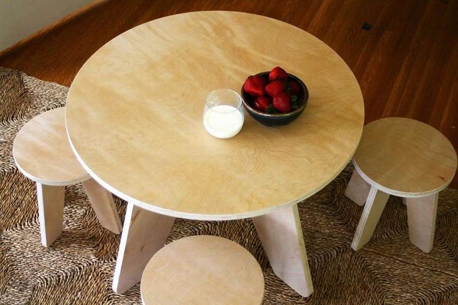 Столы — это неотъемлемая часть интерьера каждой комнаты и каждого дома. Обеденные столы бывают разных форм, цвета, а также материала, из которого собирается конструкция. Сегодня мы продемонстрируем вам 10 вариаций кухонного стола круглой формы, за основу которых взят такой материал, как фанера. Объективные плюсы фанеры заключаются в ее цене, доступности, а также в простоте обработки.