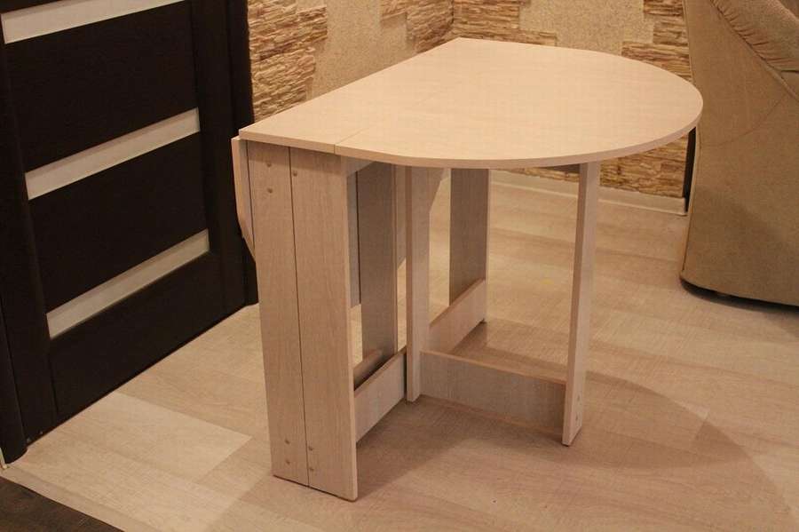 Столешница стола-книжки также может иметь круглую форму. Данный стол явно отличается от остальных своей компактностью.