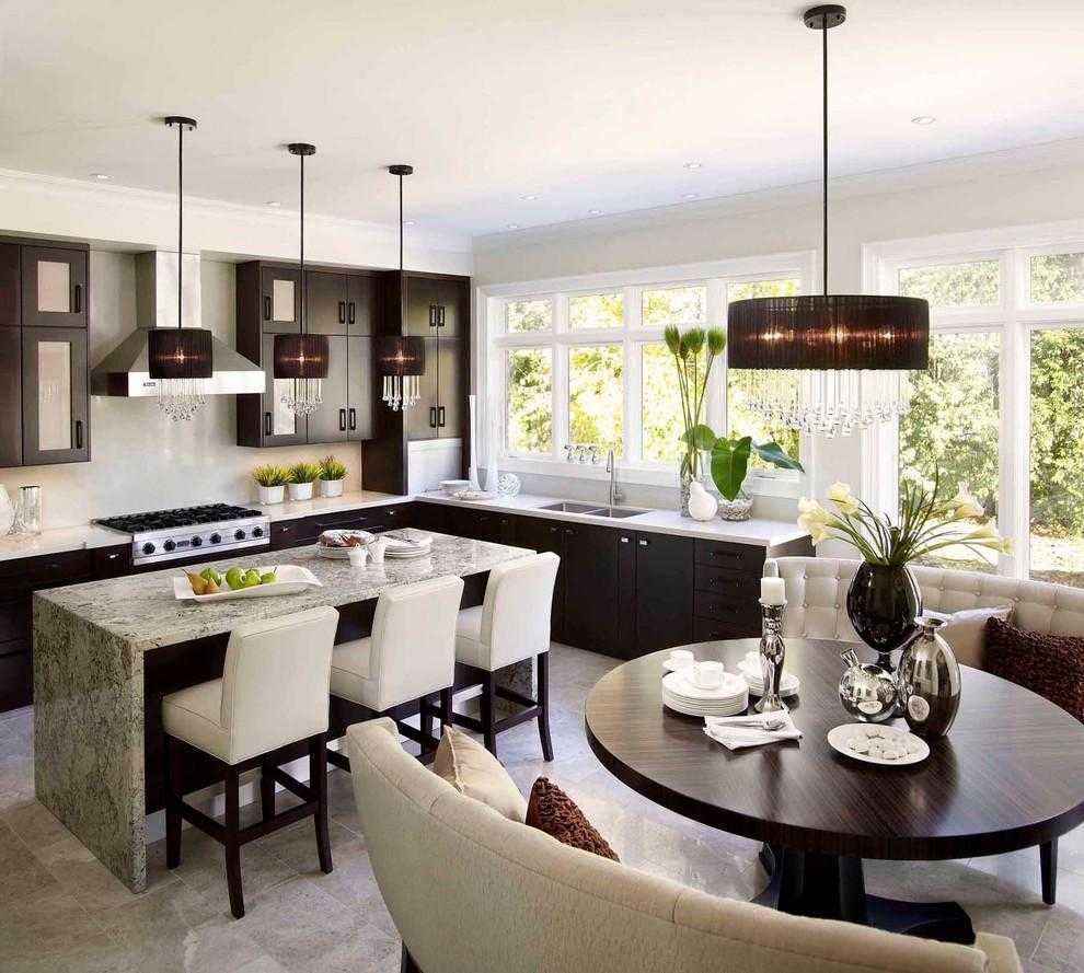 «прямые» модели размещают вдоль одной стены. Посредством диванчиков (кушеток) несложно выделить различные зоны (рабочую и обеденную);