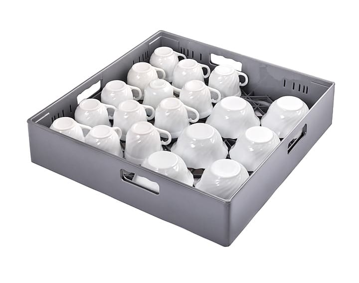 - 9 различных кассет для полупорционных и суповых тарелок, чашек, стаканов высотой от 70 до 440 мм, подносов.