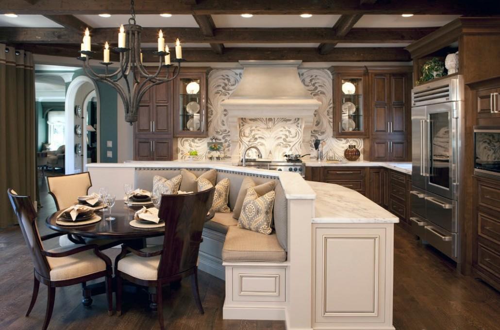 Днем она будет использовать как элемент общего интерьера, а при необходимости на ней можно разместить засидевшихся допоздна гостей. Это идеальная альтернатива мягкому кухонному уголку, но более компактная и эффектная