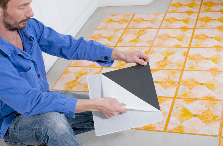 - Изделия с клеевым слоем поставляет на современный строительный рынок компания аквафор. Такие изделия отличаются улучшенными показателями влагостойкости, они идеально подойдут для укладки напольного покрытия на кухне. На изнаночной стороне панелей нанесён клеевой состав с защитной лентой. При выполнении монтажных работ достаточно снять эту плёнку. Укладка виниловых ламинированных панелей может проводиться на старый линолеум или кафель. Самоклеящаяся поверхность хорошо прилипает к основанию.