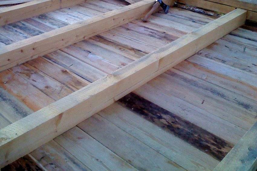 Иногда лаги укладывают прямо на бетонное основание. В таком случае обязательно проводят добротную гидроизоляцию.