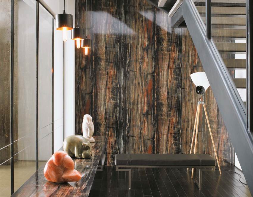 Создавая проект, можно акцентировать внимание на одной из стен либо сделать случайные вставки врезок, как бы разбавляя краски в помещении