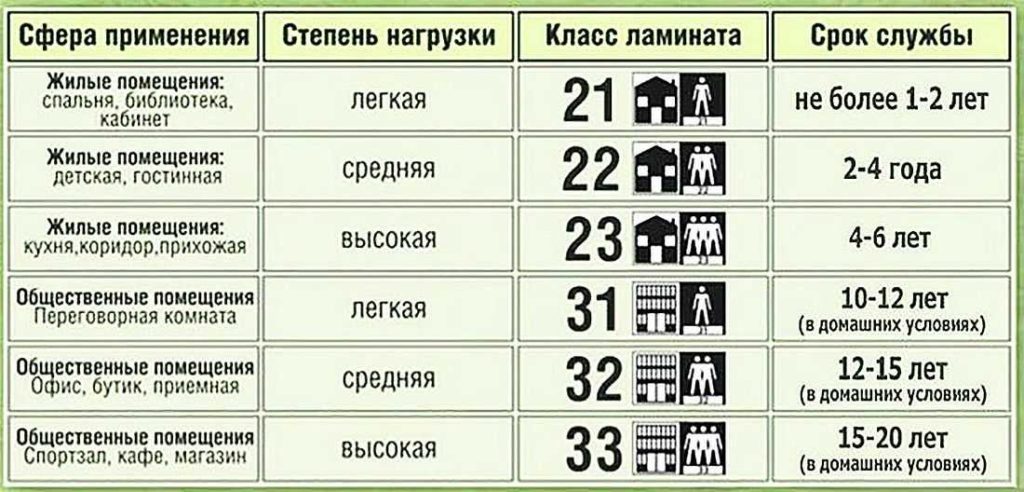 Классы износостойкости ламината обозначаются двумя цифрами:
