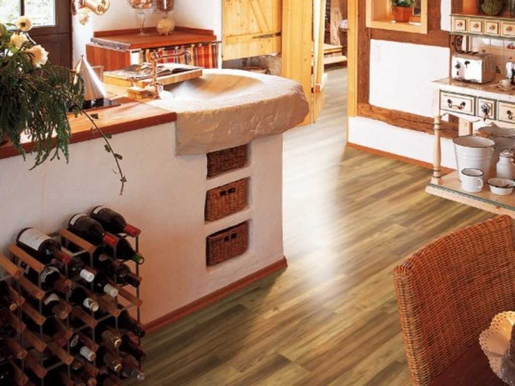 В интерьер кантри или ретро стиля прекрасно впишется ламинат с цветом выбеленного дуба. Идеально будет смотреться ламинированная основа, выполненная под вишню, тик, дуб или другой экзотический тип дерева. Гармонично будет вписываться ламинат с совмещением нескольких разновидностей дерева. Также для ретро и кантри стиля подходят выбеленные, протертые поверхности.