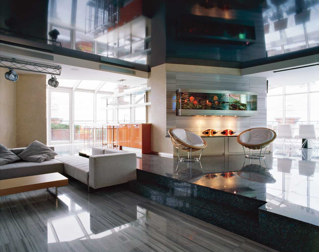 - Пространство будет казаться более просторным и лучше освещенным. Сам цвет покрытия создает такое ощущение, но, если при этом плоскость будет еще и глянцевой, то эффект усилится.