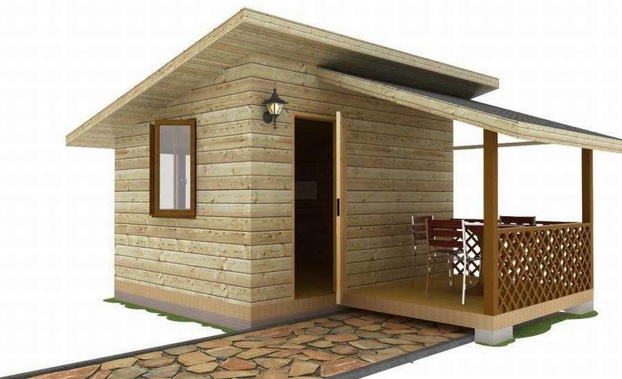 Небольшая деревянная летняя кухня с односкатной крышей