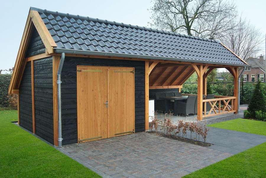 Нередко после постройки террасы она превращается в навес для инструментов быта. Почему так случается? Потому что не каждый хозяин выделает хозяйственным принадлежностям их законное место, тем самым захламляя гараж, или террасу. Сегодня мы вам предложим вариацию постройки, которая включает в себя как место хранения хозяйственной утвари, так и зону отдыха.