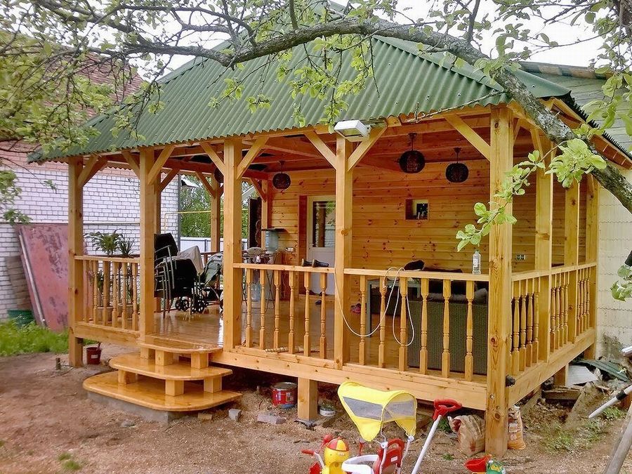 Для опытного плотника самостоятельно соорудить над летней кухней — навес от дождя, не составит никакого труда