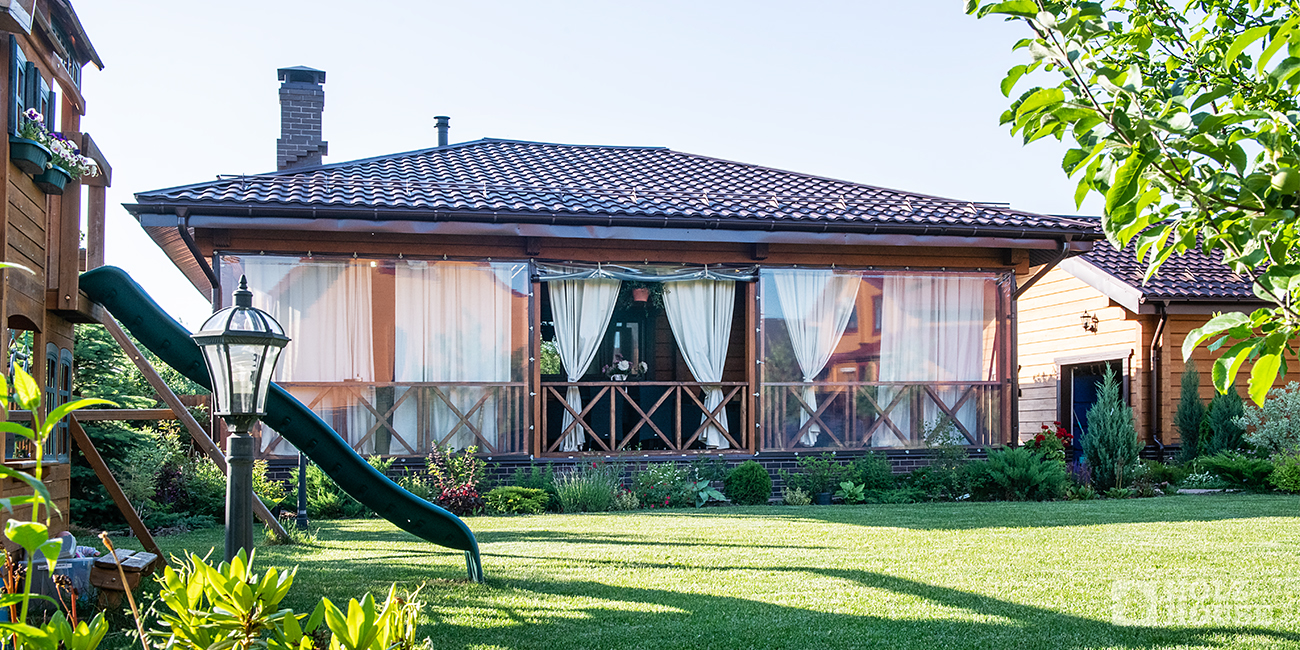 Терраса может быть закрытого типа. Это делается для защиты от ветра.
