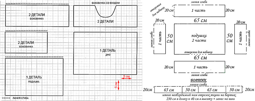 Очень важно правильно рассчитать количество материала для подушки и бортов с учетом подгиба на швы. Итак, нам будут нужны:. Итак, нам будут нужны: