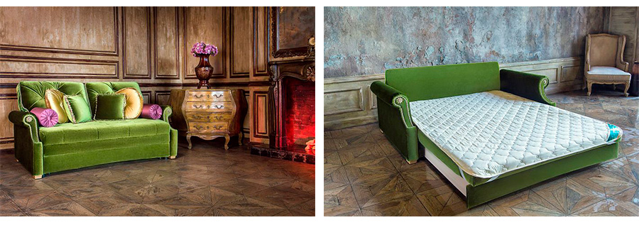 Дизайн дивана-кровати практически не зависит от механизма раскладывания, для определенного интерьерного стиля можно найти диваны различных конструкций.