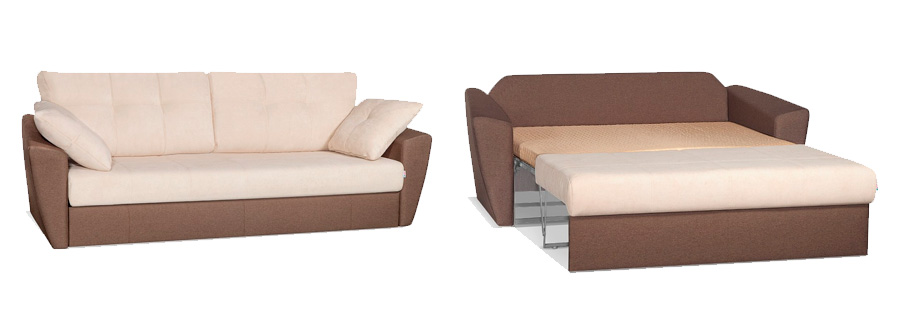 В первом случае требования к механизму раскладывания минимальные, а вот к наполнителю – огромные, так как диван должен будет постоянно выдерживать солидные нагрузки.