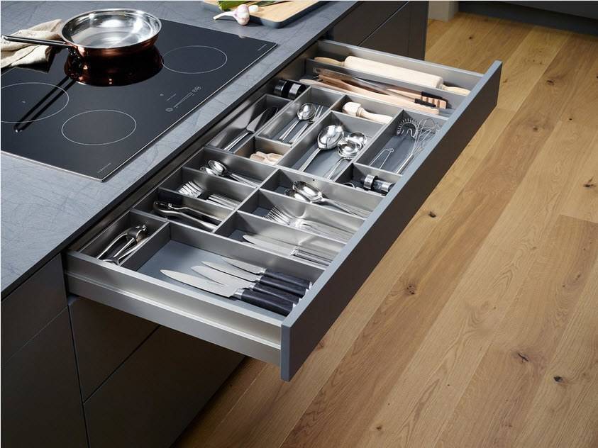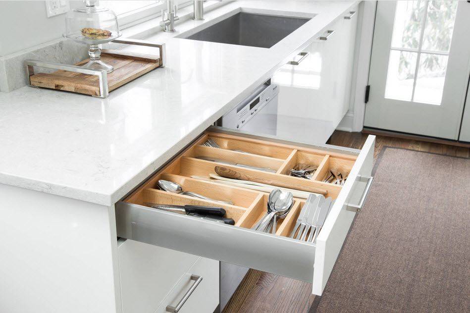 Кроме того, мебель компании «Явид» отличается превосходной организацией внутреннего пространства. Ящики подразделяются на отдельные сегменты, контейнеры и другие ёмкости, а также могут выполняться в раздвижном виде – для сочетания дизайна и удобства.