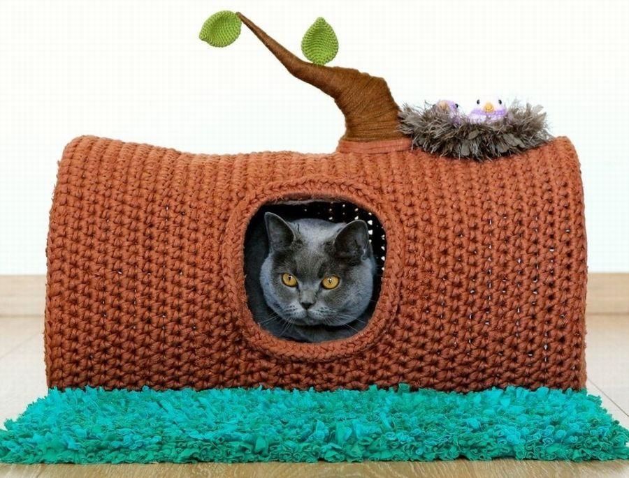 За такую такую оригинальную лежанку-домик, четвероногий любимец, несомненно, отблагодарит хозяина довольным мурчанием.
