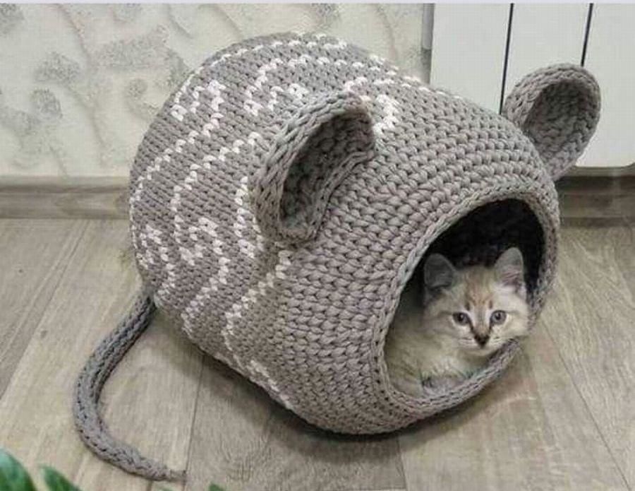 Забавную лежанку в виде мышки можно тоже изготовить своими руками, главное – запастись терпением.
