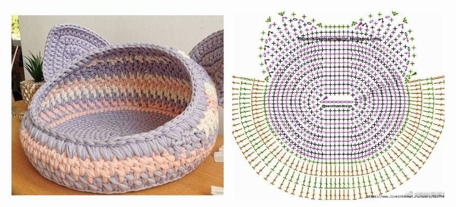 Милую лежанку с кошачьими ушками можно связать, если опираться на эту схему.
