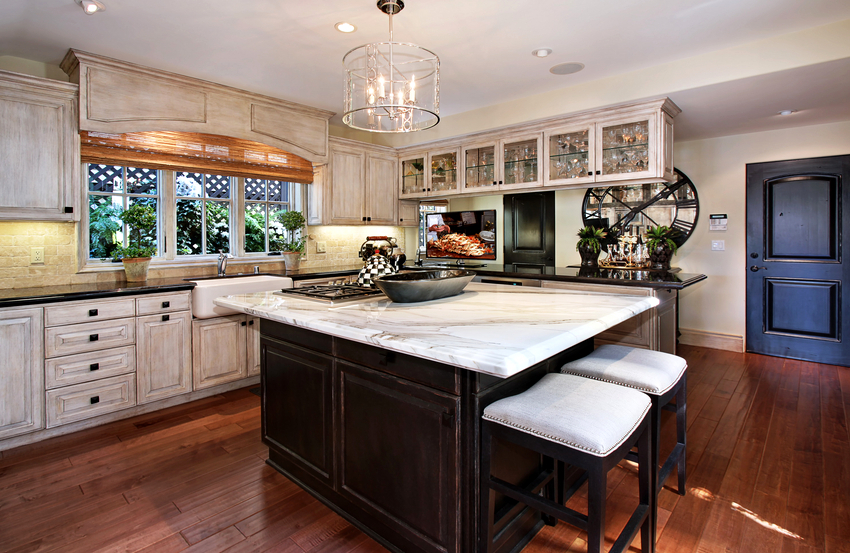 Хрустальную люстру трудно вписать в современную кухню без придания той нарочитой вычурности.