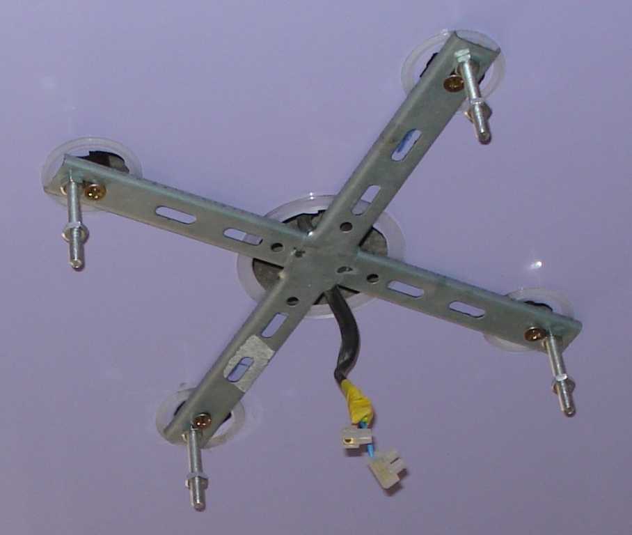 Крепление на крестообразную планку мало чем отличается от подвешивания на обычную планку. Крестообразный крепеж обычно используют для тяжелых люстр. Единственный нюанс – в подготовке основы. По понятным причинам брусок в этом случае не подходит.