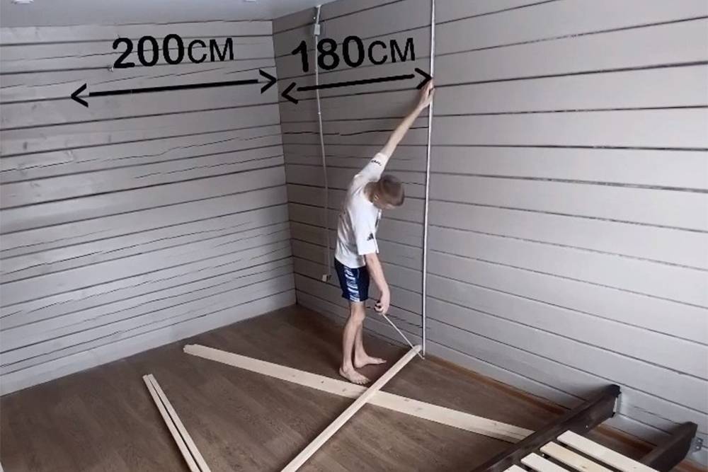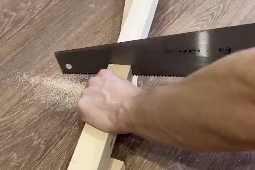Размеры гардеробной по плану — 200 × 180 см. Отталкиваясь от этого, я уже в доме нарезал бруски нужного размера обычной ножовкой.