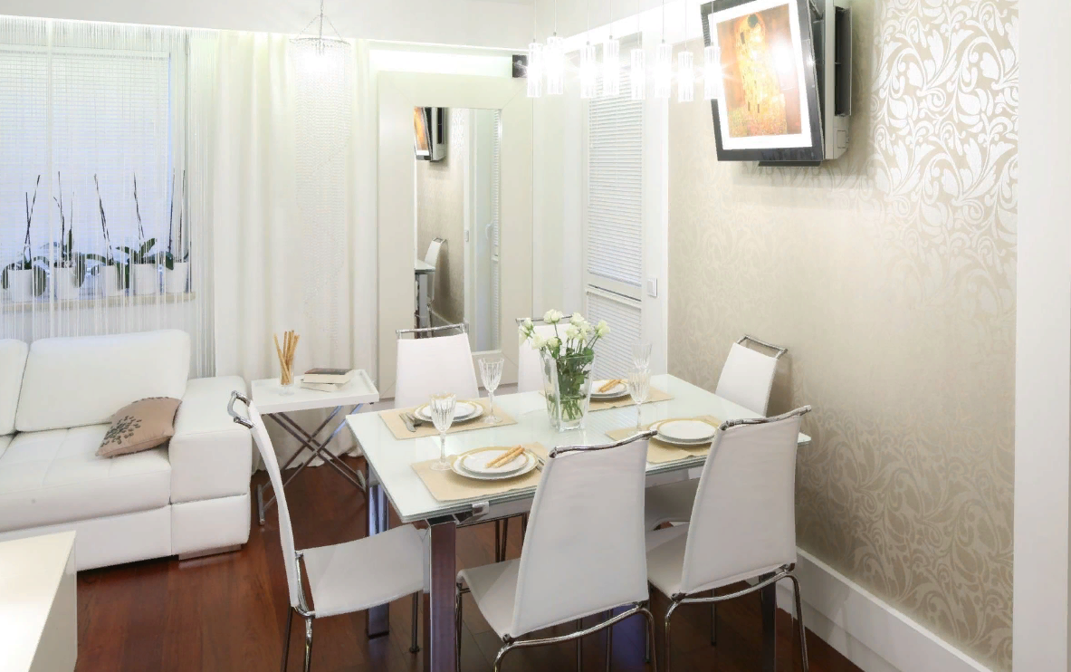 - установки прозрачных элементов. Они визуально расширят границы помещения. Здесь уместно использовать скрытую фурнитуру, прозрачные плафоны светильников, мебель со стеклянными фасадами. Например, стулья из прозрачного пластика смотрятся в интерьере стильно и при этом не загромождают пространство;