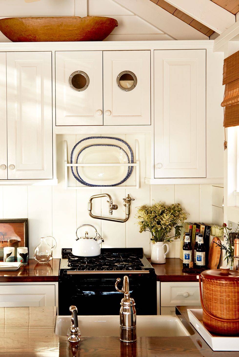 Оформление с элементами кантри-стилей. Если вам нравится прованс или кантри, не стоит от него полностью отказываться. Минималистичный дизайн несложно дополнить отдельными деталями стиля (например, шторами или плиткой с подходящим орнаментом).