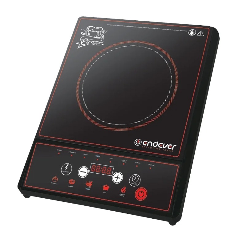 Настольная плита с сенсорным управлением, оснащена различными функциями. Есть таймер с автоматическим отключением, небольшой дисплей, несколько режимов готовки. Цвет панели в черном исполнении с элементами белого и красного. Конфорка имеет два контура. В комплектацию входит инструкция и гарантийный талон.