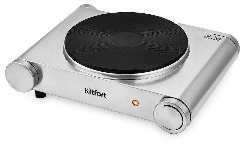Победитель рейтинга настольных электрических плит с одной конфоркой – модель российской компании Kitfort. Инженерам бренда удалось объединить классический формат и футуристический дизайн. Управление осуществляется с помощью двух регуляторов, которые позволяют плавно настроить температуру и выбрать оптимальный режим для готовки любых блюд.