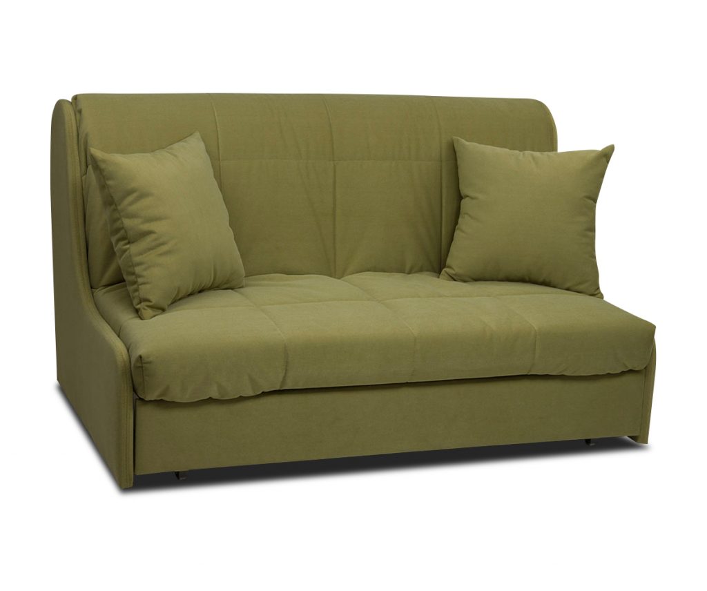 К компактным относятся диваны шириной до полутора метра и длиной не более двух метров. Мебель достаточно высокая, так как в ее конструкции часто используется механизм трансформации «еврокнижка» и «аккордеон». В разложенном состоянии компактный диван кровать превращается в полноценное спальное место, не уступающее габаритами обычной двуспальной кровати (около двух метров в длину и ширину).