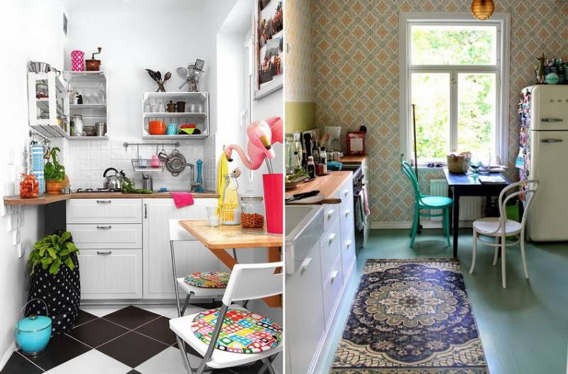 При формировании маленьких кухонных помещений в первую очередь рассматриваются функциональность и эргономика, а при выборе материала исходят из понятий гигиеничности и экономии. Кухни отличаются более высокими влажностью и температурами, что влияет на обстановку