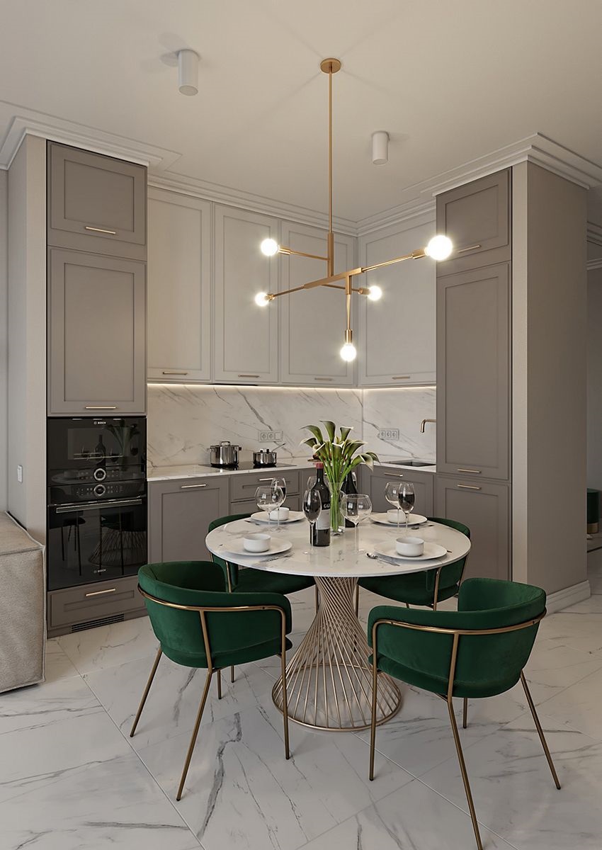 Несмотря на роскошный интерьер, помещение, предназначенное для приготовления и приема пищи, должно быть удобным и функциональным. Дизайнеры смело сочетают классический интерьер и новейшие технологии.