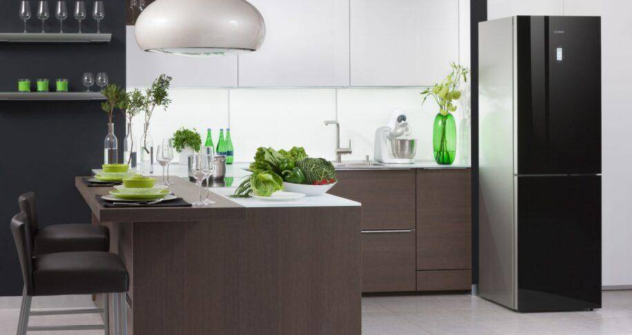 Так как, холодильник представляет собой органичную часть мебели, на его размещение влияет планировка и конфигурация кухни.