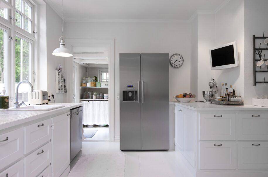 В кладовке хороший вариант для кухонь, рядом с которыми есть небольшое пространство где внутри есть место для размещения техники. Кладовка должна находиться близко, возможно через небольшую перегородку. Есть преимущества – холодильная камера не будет подвержена влиянию влажности, солнца, температурных изменений.
