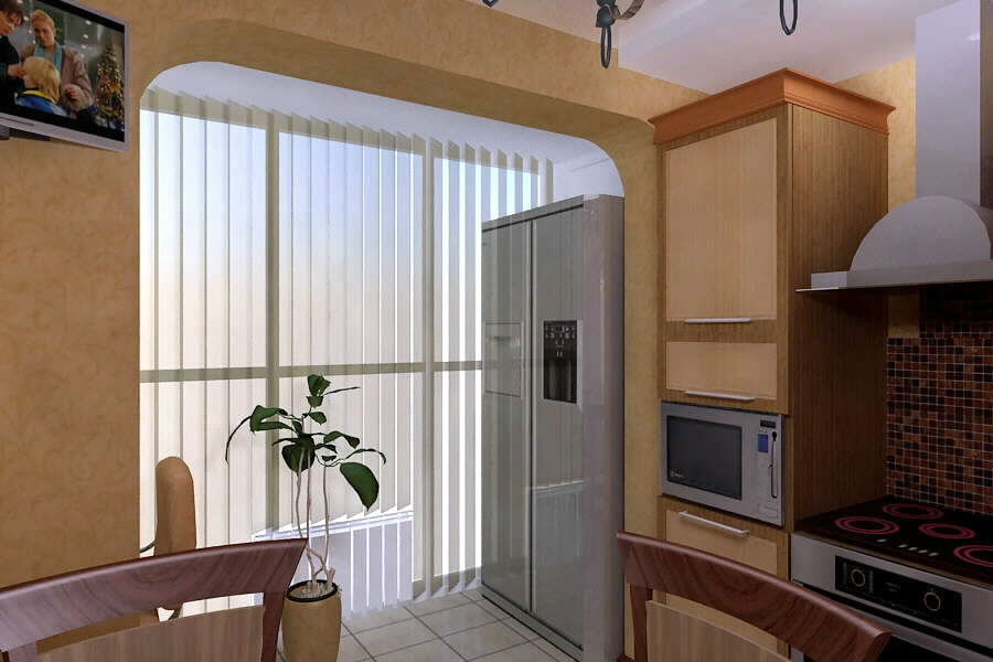 На балконе. Использовать для установки холодильной камеры можно только лоджию, которая фактически является частью кухонного пространства. Можно убрать перегородку, объединить ее с маленькой кухней, расширить полезную площадь. Балкон должен быть утеплен и иметь крепкое основание, так как холодильник обладает большим весом.