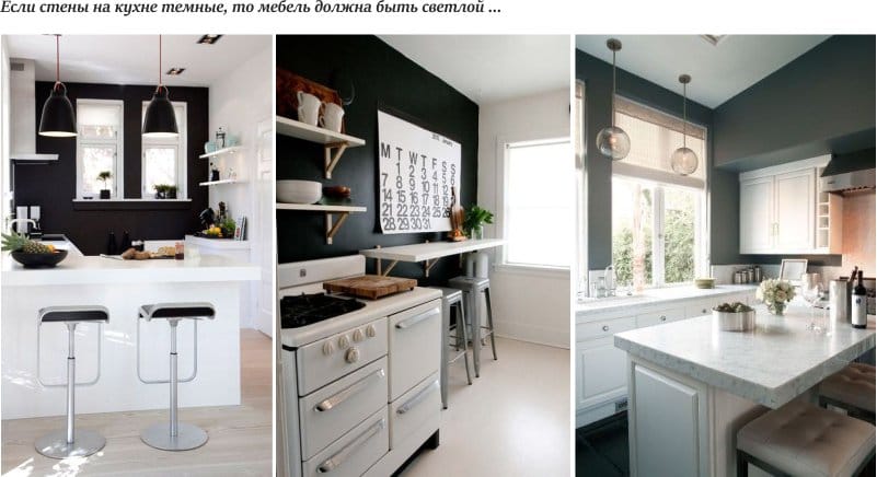 Поклонникам темных тонов в интерьере тоже нечего опасаться. На небольшой кухне тоже возможна элегантная темная мебель, но стены тоже должны быть светлых оттенков. В маленьких кухнях стоит ориентироваться на простые узоры плитки. Избыток узоров только визуально уменьшит комнату и сделает ее громоздкой.