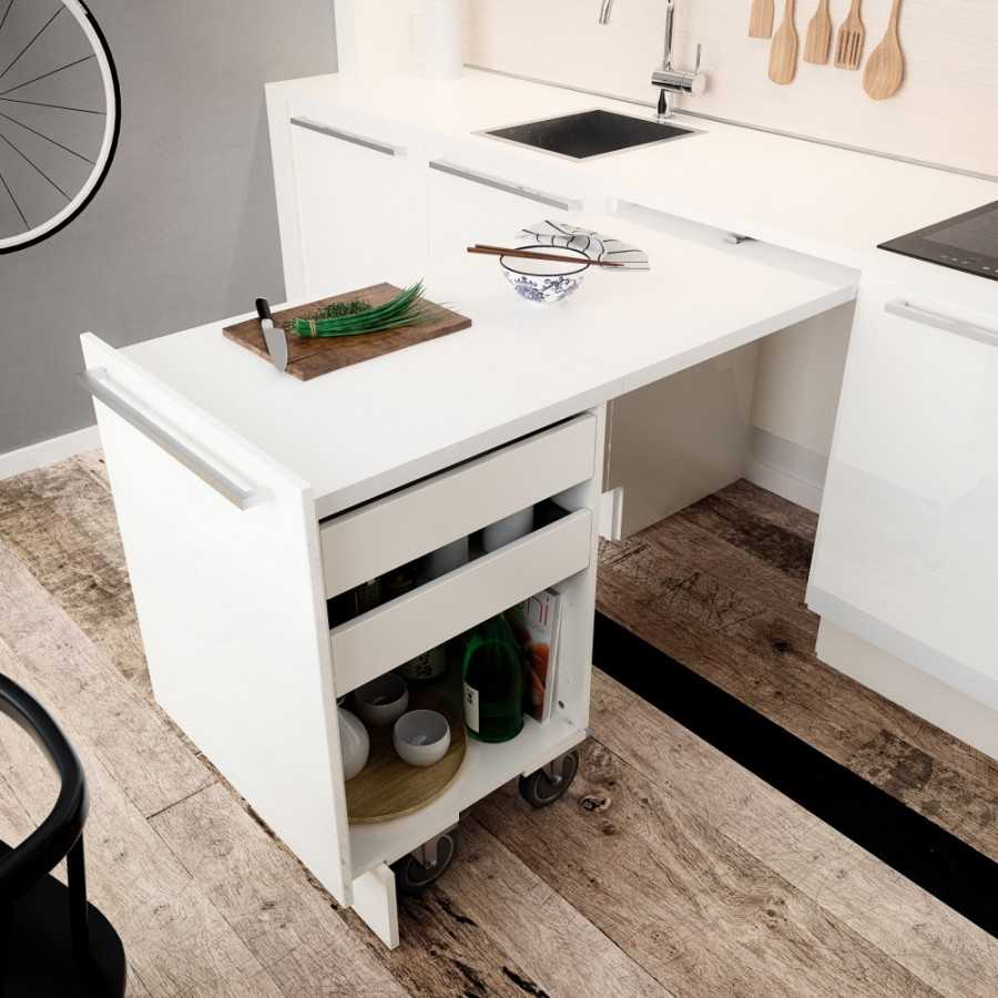 Компактный стол-шкаф поможет сэкономить пространство на кухне.