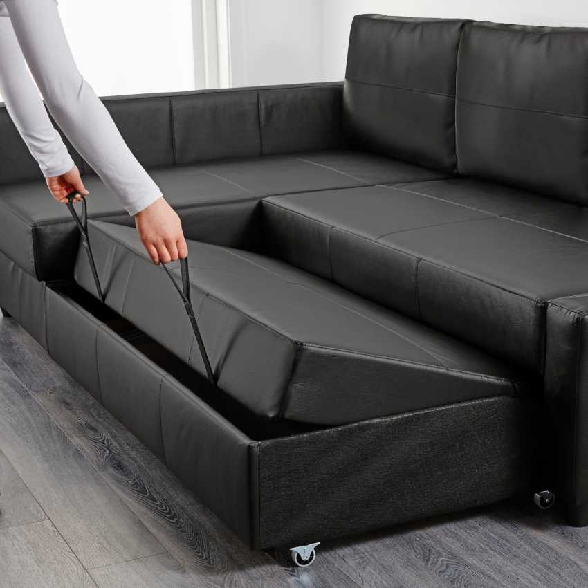 Ровная поверхность, полученная в результате таких несложных манипуляций, образует комфортное и вместительное место для сна. При этом и угловой, и прямой варианты дивана разбираются и собираются одинаково. Чтобы сложить диван, требуется снова потянуть за ручки вверх и приподнять часть, пока она не перестанет упираться в противоположную сторону. Затем ее просто опускают и задвигают в исходное положение до упора.