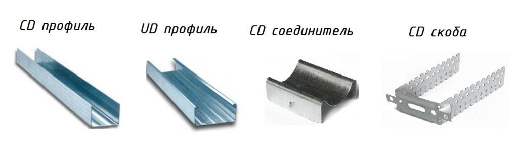 - CD-профили – идут на горизонтальные и вертикальные стойки.