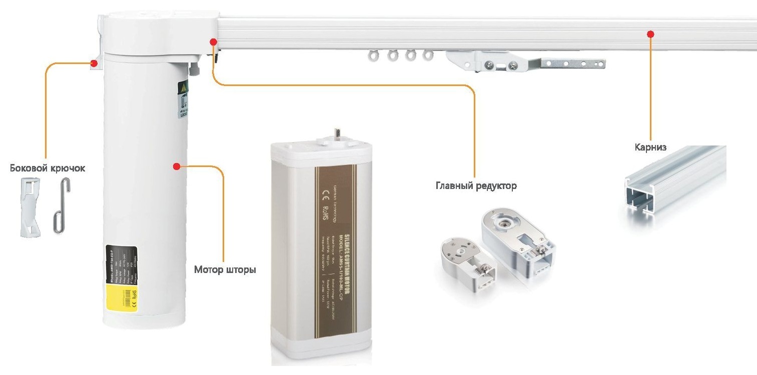 Ультрасовременный подвес для штор предусматривает автоматическое дистанционное управление с помощью пульта или мобильного приложения. Выглядит такое изделие как профильная конструкция с электроприводом. Исходные материалы – металл или пластик. Крепление осуществляется как к стене, так и к потолку помещения.