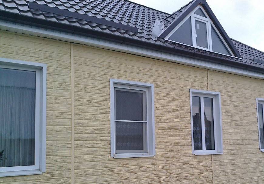 Под этим термином подразумеваются и виниловый, и акриловый варианты. Это самый популярный облицовочный материал в современном загородном строительстве.